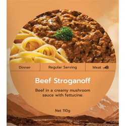 Ingredients: Sour cream [Cream (from milk), skim milk, thickener (1422), gelatine, milk solids, emulsifier (339), culture], Pasta [Durum wheat semolina], Beef, Coconut oil, Beef stock [Southern ocean sea salt, maize maltodextrin, cane sugar, yeast extract, dehydrated vegetables, rice flour, natural vegetable flavours, caramelised sugar syrup, canola oil], Onion, Mushrooms, Tomato paste, Onion powder [Onion powder, anticaking agent (470)](contains sulphites), Parsley, Dijon mustard [Water, mustard seeds, vinegar, salt preservative (222), acidity regulator (330)], Crushed garlic [Garlic, salt, water, acidity regulators (260, 330), preservative (202)].
