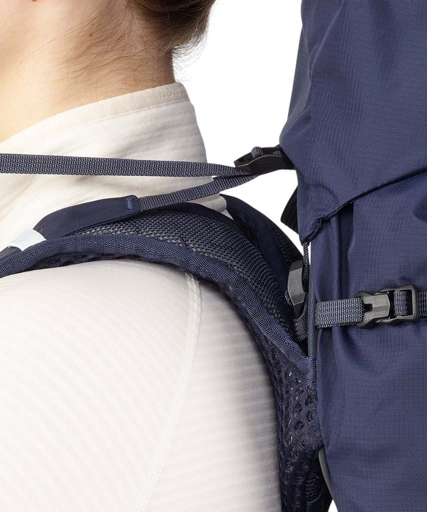 • Adjustable shoulder straps, sternum strap, load lifter straps, and belt with large buckle for a customizable fit