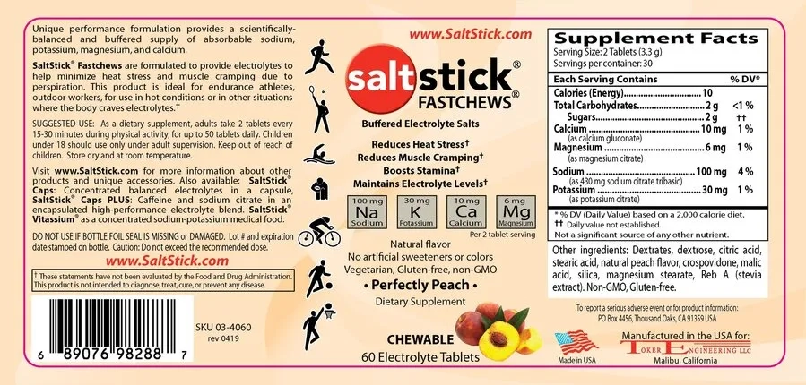 SUGGESTED USE: Take 2 tablets every 15-30 minutes during physical activity. The electrolytes in FastChews absorb more quickly when you let them dissolve in your mouth, so it's best to wait 2-3 minutes before eating or drinking.