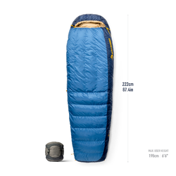 The semi-tapered rectangular shape offers more space than a traditional mummy bag, making it ideal for side sleepers or anyone who values unrestricted comfort after a long day on the trail. Filled with 650+ fill power Ultra-Dry Duck Down, it provides dependable insulation down to -1°C while maintaining impressive packability for multi-day hikes.