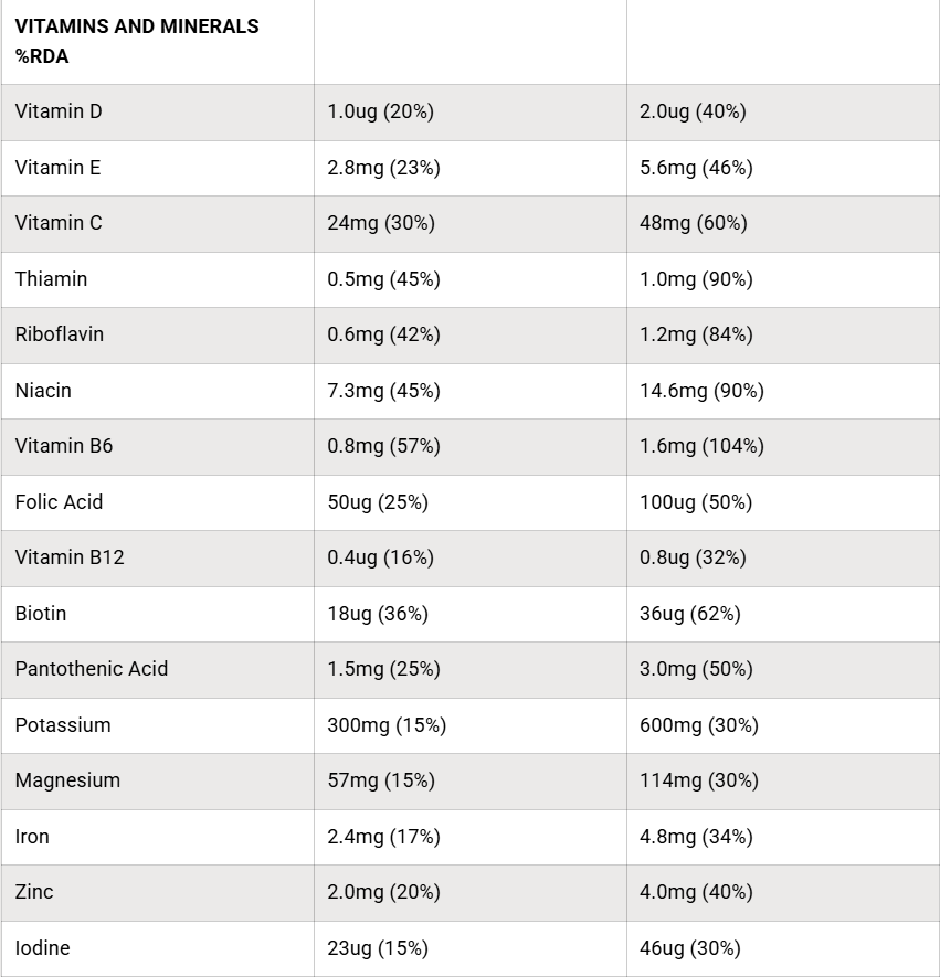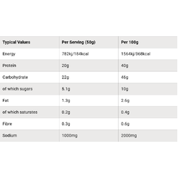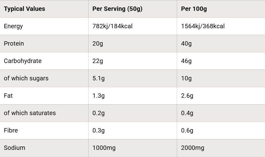 Serving Size: 50g (approx. 3 scoops mixed with 500ml water)