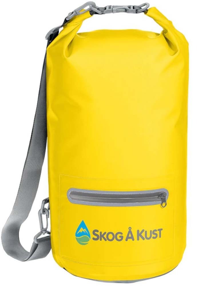 With its tough waterproof fabric, DrySak protects your gear from virtually anything Mother Nature can dish out. Plus, it offers features that . pioneered; such as a zippered exterior pocket & reflective trim! Splash-Proof Pocket Gives Easy Access to Small Essentials No need to open up your dry bag and rummage around for your chap stick, wallet, cash or keys. Simply stash those must-haves in DrySak's outer pocket. Never again will you have to expose your other belongings to the elements when you simply need your ID! This pocket will even hold most small cameras or cell phones. Always use additional protection with electronics, and other water sensitive items, before storing in the pocket if there is a chance the bag may before submerged or exposed to prolonged driving water or rain.