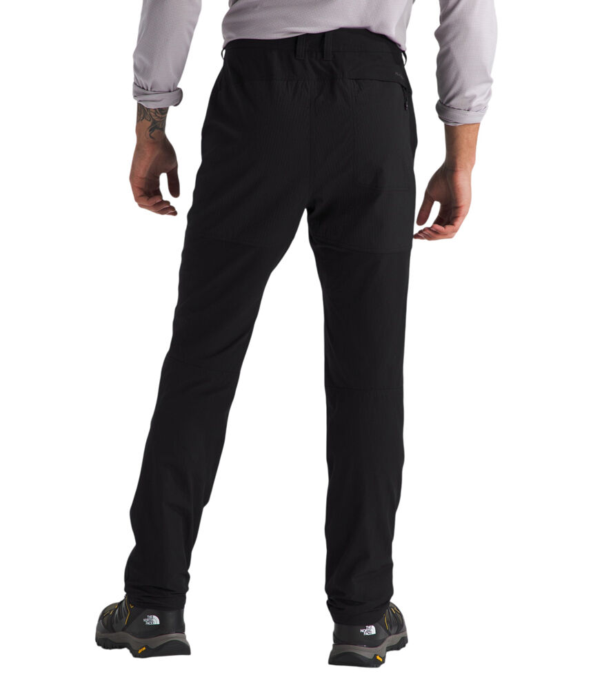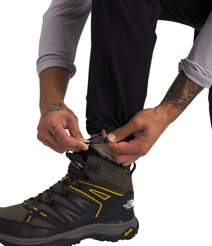 For demanding trails and long days on foot, The North Face Basin Pro Men's Hiking Pants are built to perform when it has to work. Designed with four-way stretch and articulated knees, these men's hiking pants move naturally with you on steep ascents, rocky scrambles and uneven terrain. FLASHDRY technology actively manages moisture to help keep you comfortable as the pace picks up, while a non-PFC DWR finish sheds light rain and trail spray. Reinforced woven overlays on the seat and knees add durability in high-wear zones, giving you confidence when kneeling, climbing or carrying a heavy pack. An integrated webbing belt with secure G-hook allows for quick, precise adjustment, and multiple pockets including a secure-zip thigh pocket keep essentials close at hand. Built with a high percentage of recycled nylon, these technical hiking pants deliver reliable performance for serious days in the Australian backcountry.