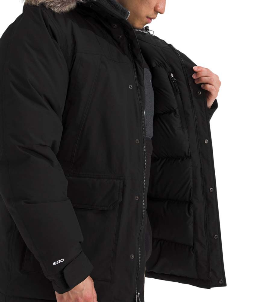 The McMurdo Parka, our longest men's coat, has a long list of must-have features. It is windproof, waterproof, breathable, and insulated with 600-fill recycled down.