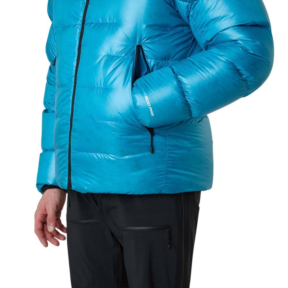 Packed with warm and compressible 800-fill ProDown, the Summit Pumori Down Parka delivers pinnacle performance for high-altitude mountaineering. Its hydrophobic finish allows it to dry faster than untreated down, while the Cloud Down construction helps Reduce cold spots. It's finished with a helmet-compatible hood, FlashDry stretch-knit cuffs and an insulated internal draft tube that helps retain warm air.