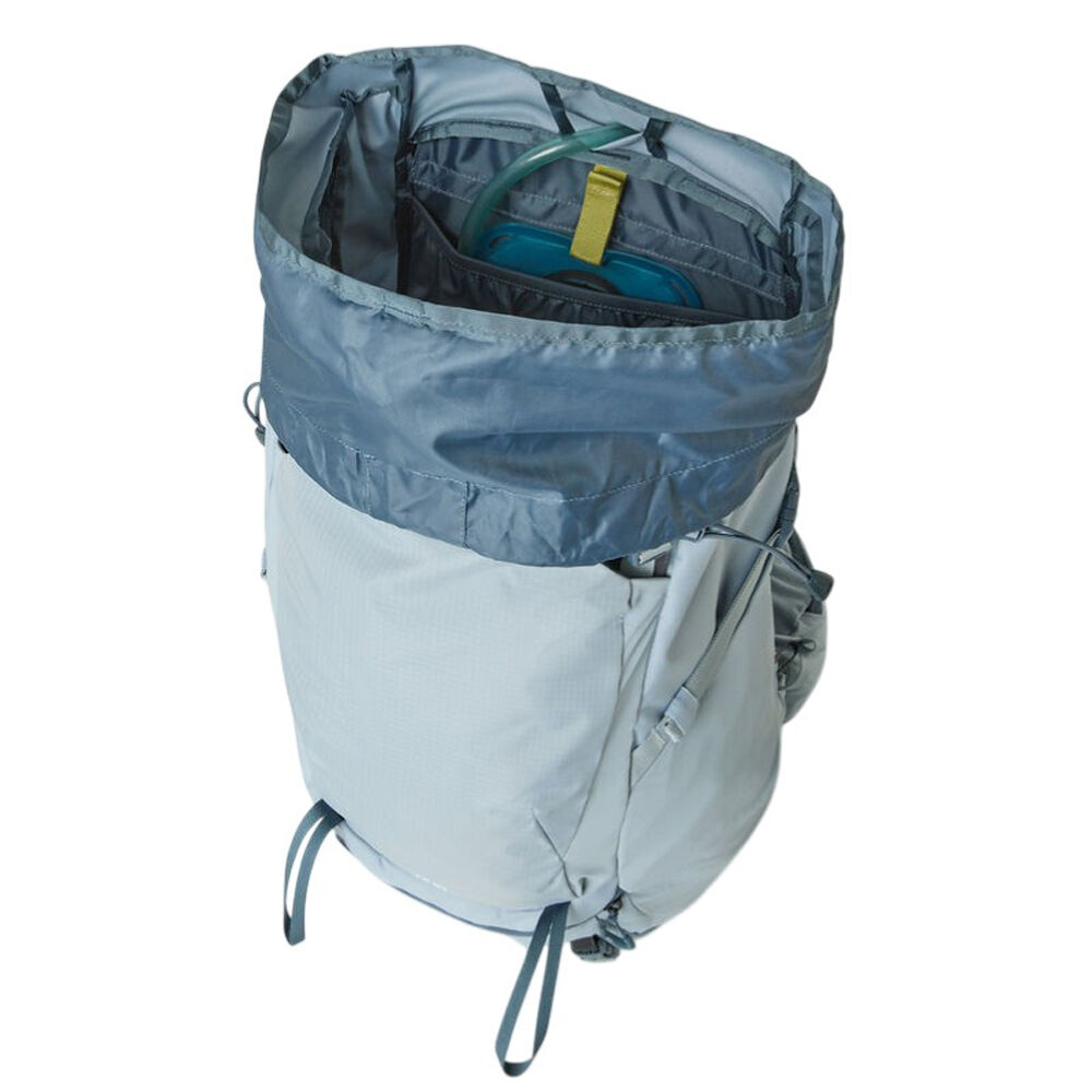 The breathable back panel, shoulder straps and hip belt are strategically patterned for ventilation and support, helping you stay comfortable under load. A full length two way U zip provides easy access to the main compartment from top to bottom, while the removable lid, hip belt pockets and stretch mesh bottle pockets keep essentials within reach. Built from durable recycled materials with a water repellent finish, it is ready for changing conditions on the trail.