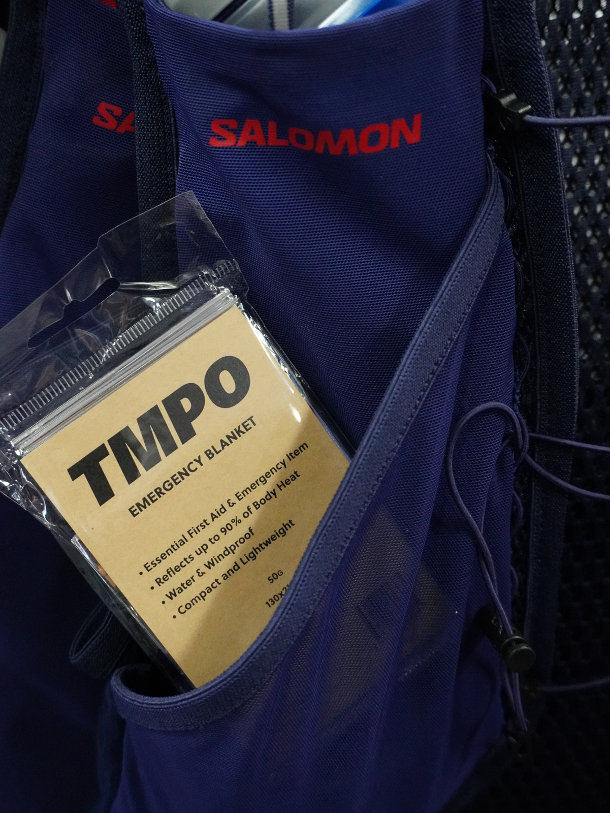 The TMPO Emergency Blanket is a race-day essential, designed to help runners meet mandatory gear requirements for trail and ultra events. Lightweight, compact, and highly effective, it reflects body heat to help prevent hypothermia in an emergency. Whether it’s packed for a mandatory kit check or used in unexpected conditions, this blanket offers reliable protection against wind, rain, and cold when it matters most.
