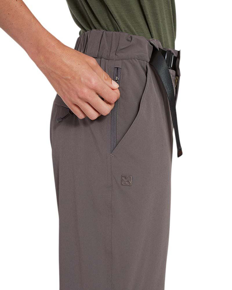 Travel light and stay comfortable with the women's Wye River Zip Off Pant which easily converts to a hiking short. Designed with recycled nylon and spandex fabric, these pants provide UPF 50+ protection and PFC-free water repellent coating. Polygiene wash reduces odours making them perfect for long trips!