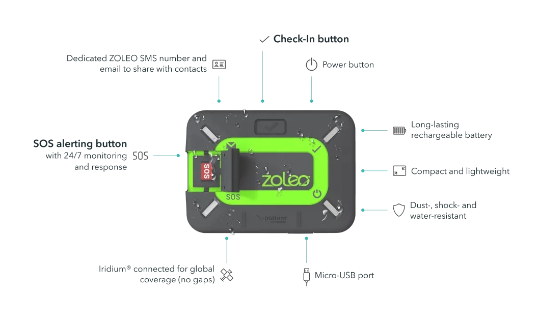 Whether you're deep in the backcountry or working off-grid, the ZOLEO Emergency Satellite Communicator keeps you connected when mobile coverage stops. Pair it with your smartphone and the free ZOLEO app to unlock global messaging, real-time GPS location sharing, 24/7 SOS monitoring, and on-demand weather updates. Compact, rugged, and Iridium® satellite-powered, ZOLEO ensures your safety and peace of mind - wherever your adventures take you.